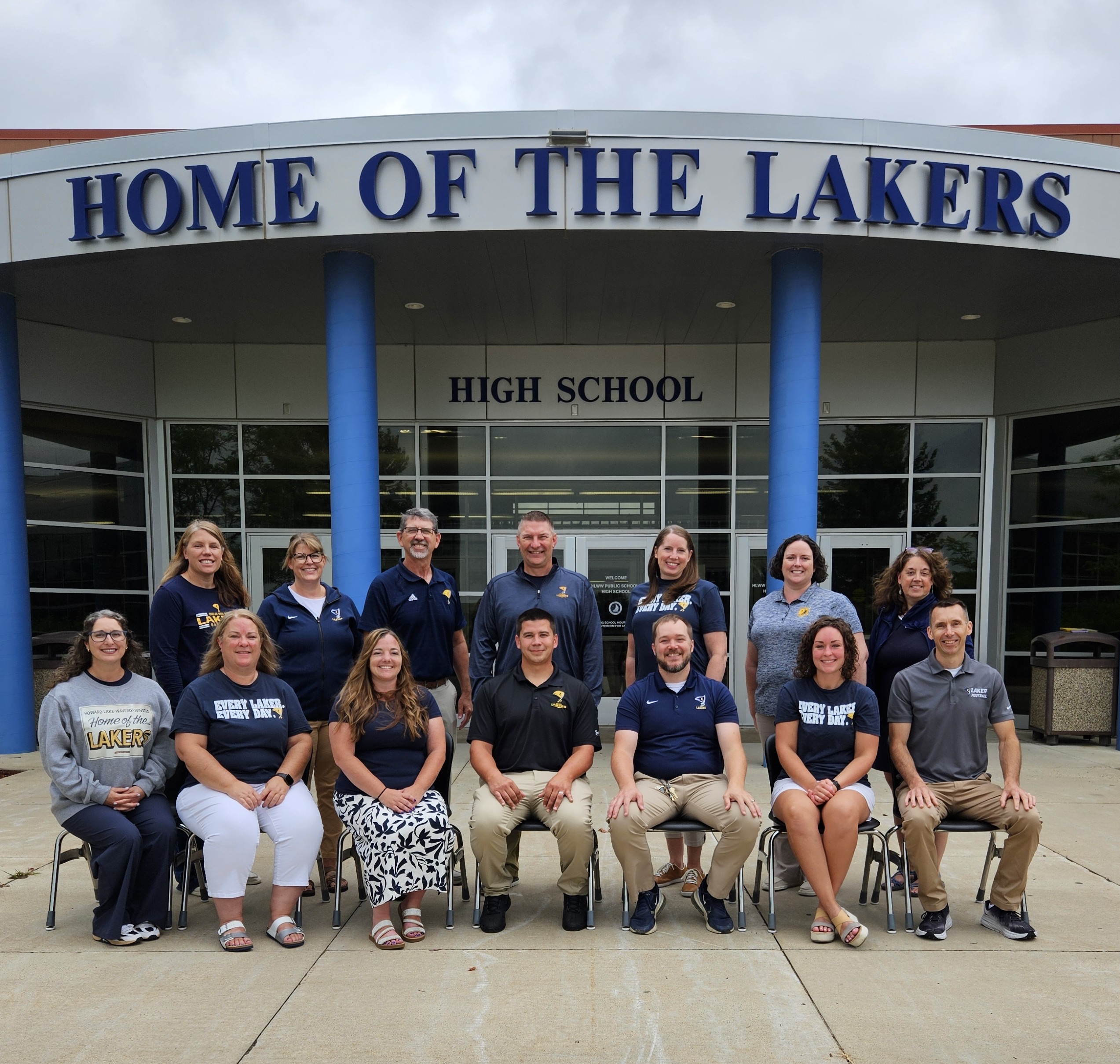 Front Row (L to R) – Stephanie Kuehn (High School Principal); Michelle Johnson (Food Service Director); Nicole McKee (Transportation Director); Joe McKee (Buildings and Grounds Director); Joe Puncochar (Activities Director); Morgan Johnson (Health Services Director); Travis Eldred (Technology Director)